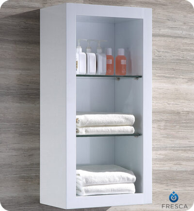 Fresca FST8130WH White Bathroom Linen Side Cabinet with 2 Glass Shelves