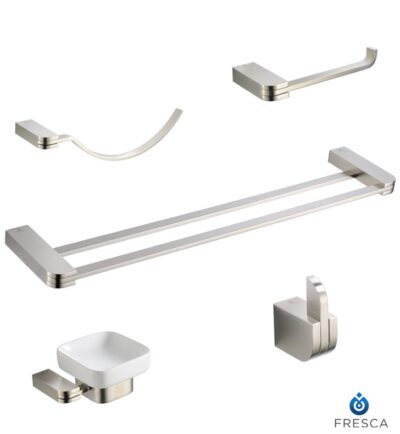 Fresca FAC1300BN-D Solido 5 Piece Bathroom Accessory Set in Brushed Nickel with Double Towel Bar