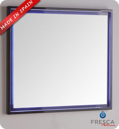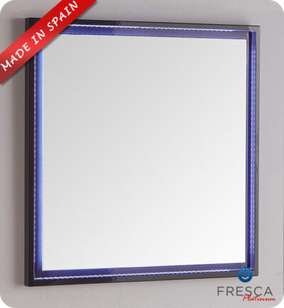 Fresca Platinum FPMR7630BL Napoli 32" Black Gloss Sandblasting Mirror w/ LED Lighting, Touch Switch and Fog-Free System