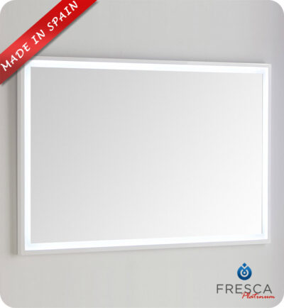 Fresca Platinum FPMR7640WH Napoli 40" White Gloss Sandblasting Mirror w/ LED Lighting, Touch Switch and Fog-Free System