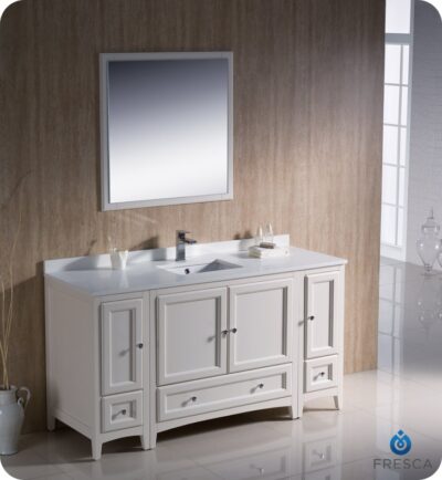 About Fresca FVN20-301230AW Oxford 72″ Traditional Double Sink Bathroom Vanity with Side Cabinet in Antique White