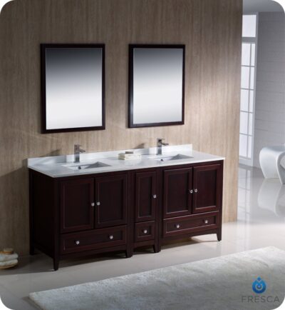 Seamlessly blending sophisticated form and intuitive function, the beautiful Fresca Oxford 72″ Traditional Double Sink Bathroom Vanity with One Side Cabinet can bring that little something extra to your home bathroom. The beautiful Mahogany finish also matches a range of decor schemes, from traditional to modern and contemporary appeals.